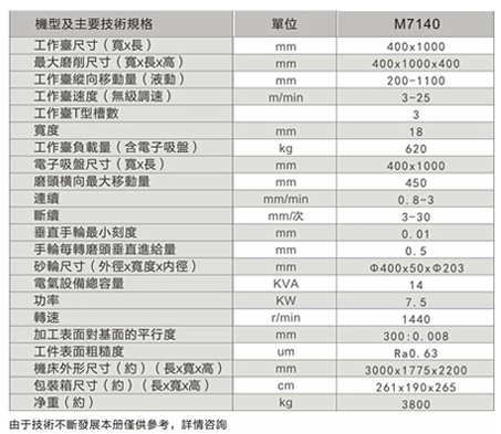 1、本機(jī)床屬于重切削磨床,適用于機(jī)械制造、模具等行業(yè)的平面磨削??赡ハ麂摷㈣T件及有色金屬等材料。工件可直接固定在工作臺面上或放在電磁吸盤上磨削。